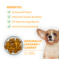 Naturally Chicken + Carrot isn’t just a treat – it’s a daily dose of goodness. Handcrafted, gently dehydrated, and made only with real, recognizable ingredients, this upgraded snack is ideal for dogs of all sizes and life stages.