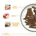 Our Naturally Duck & Apple treats are made with only three clean ingredients: premium duck breast, fresh apple, and fermented seaweed powder. Gently air-dried to preserve nutrients, this simple yet powerful formula provides lean protein, gut-friendly prebiotics, and antioxidants โ perfect for pets with sensitive skin or tummies.